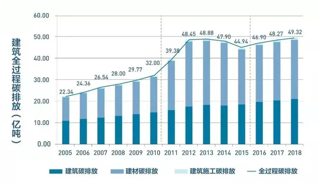 世界上現在有52%的人口居住在城市,而絕大部分的建筑都是新建筑革命時代之后建造的。新建筑革命所帶來的這種遺產,使得建筑結構簡潔,且更加注重功能,雖滿足了人民的基本居住需要,但卻絲毫沒有憐憫地球會因此受到哪些負面影響。根據國際能源署提供的數據,建筑全生命周期產生的碳排放無論怎么算都占到碳排放總量的40%以上,即人類活動所造成的溫室氣體排放量中,建筑行業占到其中的40%,而這個比例在我國則達到了50%。